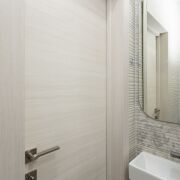 - Пол –плитка. Натяжной потолок. Встроенные шкафы. Высокие потолки.