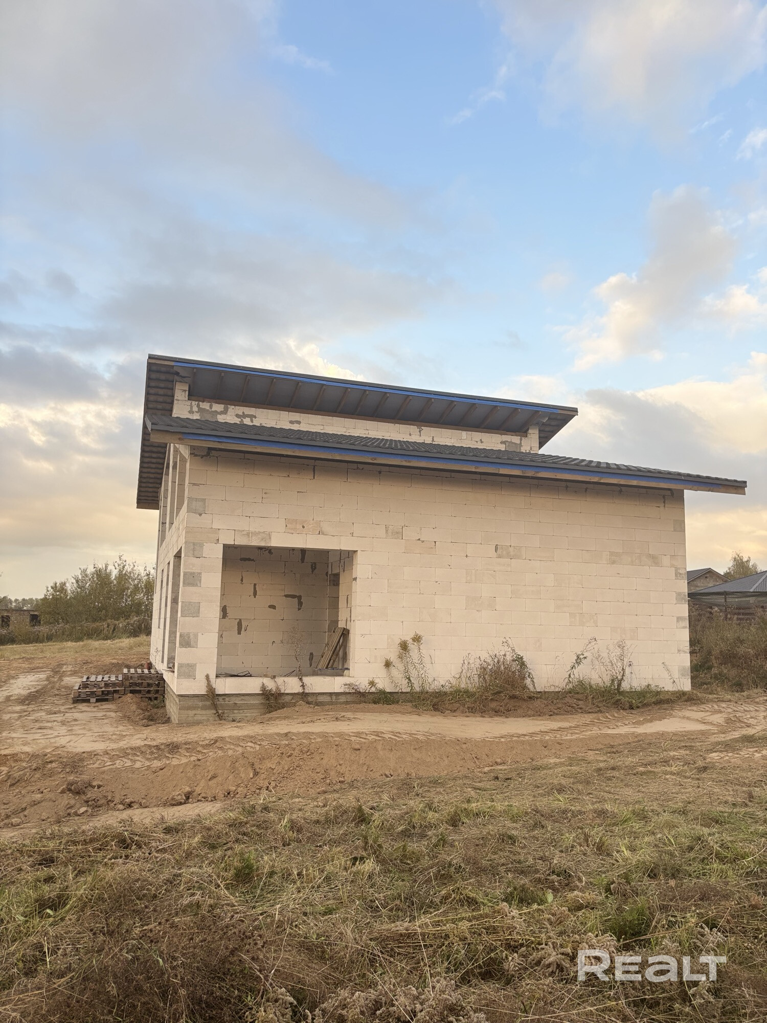 Земельный участок 14,2 сот с современным недостроенным домом (161,22 м2)в непосредственной близости от МКАД по Слуцкому направлению (ориентировочно 10км).Участок находится на проектируемой улице.Хорошие подъездные пути – 2 дороги до участка ( со стороны д. Котяги ( насыпная дорога ), по проектируемой улице дорога практически достроена к участку). Кол - во этажей -2, кол - во комнат -5. Электроснабжение подведено к дому. Водоснабжение и газ возможно подключить от существующей сети. Возможен обмен