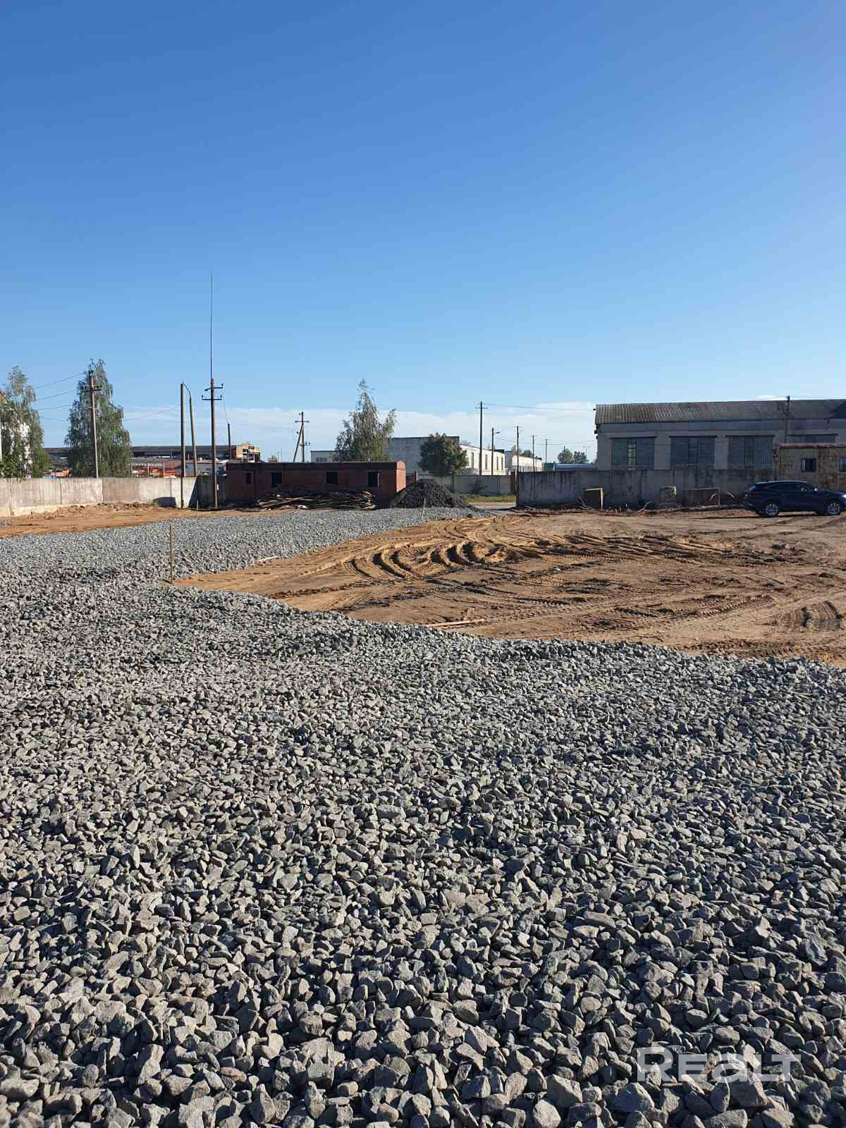 На территории имеется осветительные мачты, административное помещение, электричество 380 В, 4 000 м2 усовершенствованной дороги внутри территории.