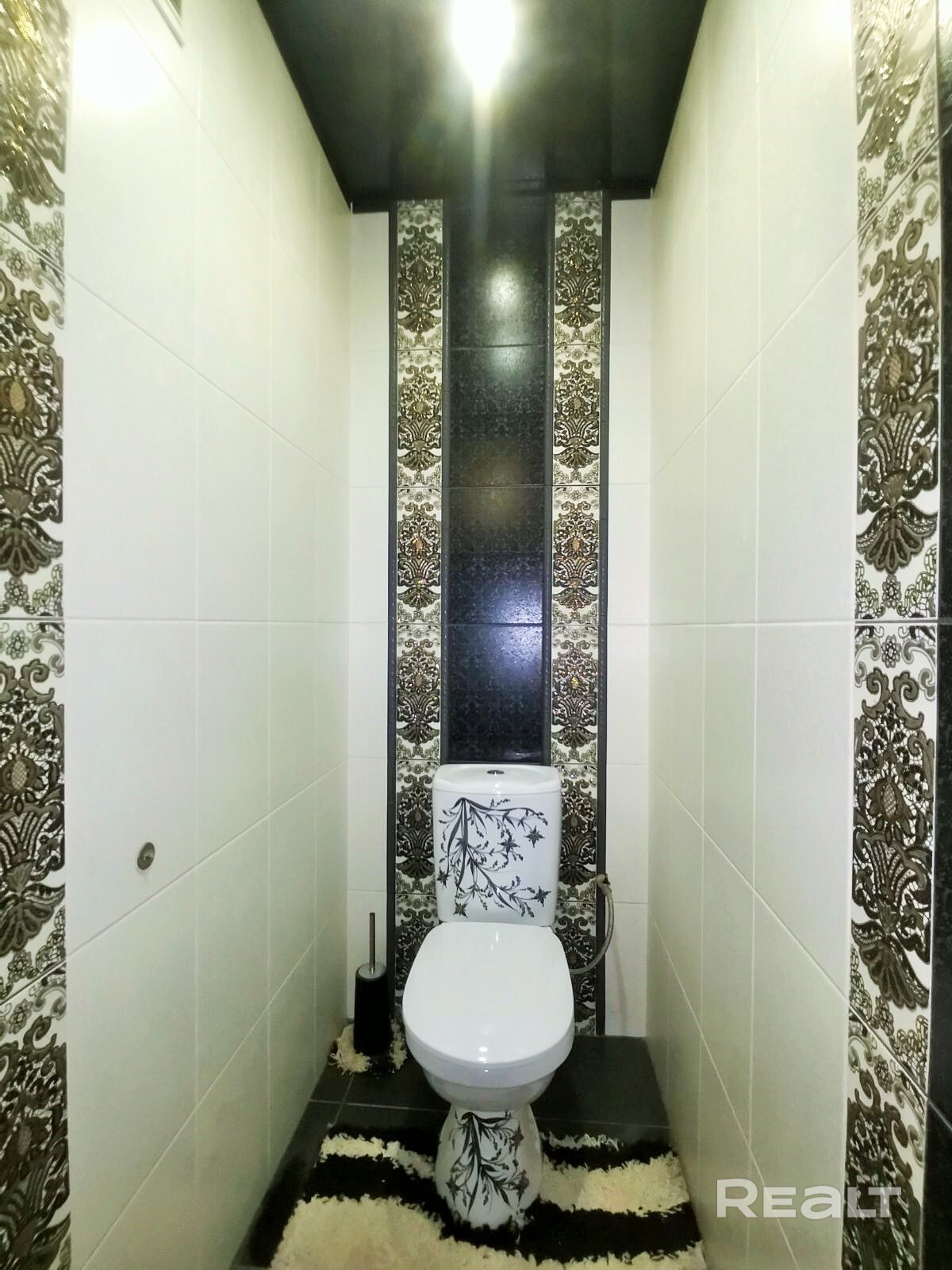 Стены в ванной комнате, туалете и рабочая зона на кухне также облицованы плиткой.
