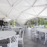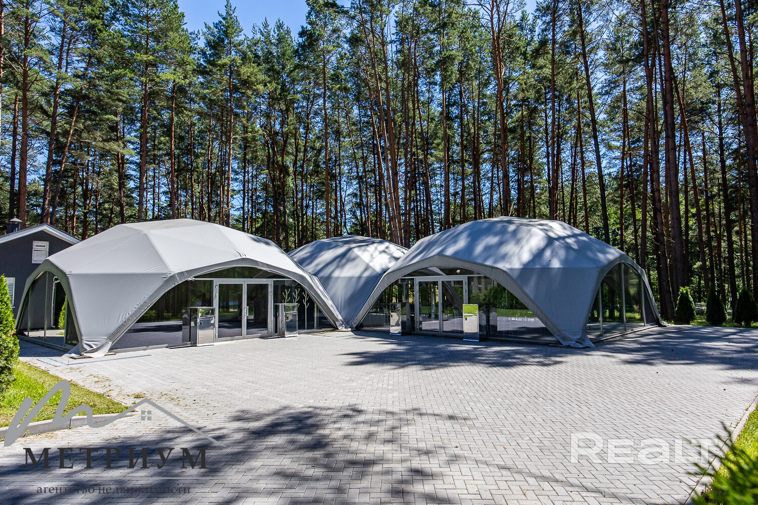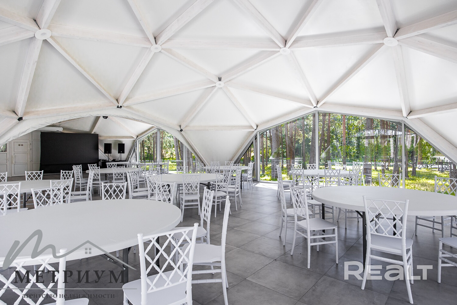 В загородном комплексе есть возможность провести масштабное мероприятие благодаря большому, современному и уютному шатру. Он вмещает в себя до 200 гостей и подходит для любого мероприятия: свадьбы, корпоративы, юбилеи, нового года и другого выездного банкета, поскольку в нём установлена большая профессиональная кухня. И что важно- в нём комфортно в любую погоду, так как помещение отапливается водяными полами. Большие панорамные окна из алюминия с завораживающими пейзажами никого не оставит равнодушными. В наличии посуда на 200 гостей, 3 кондиционера, огромный экран, профессиональное музыкальное оборудование. Также шатёр оборудован санузлами.