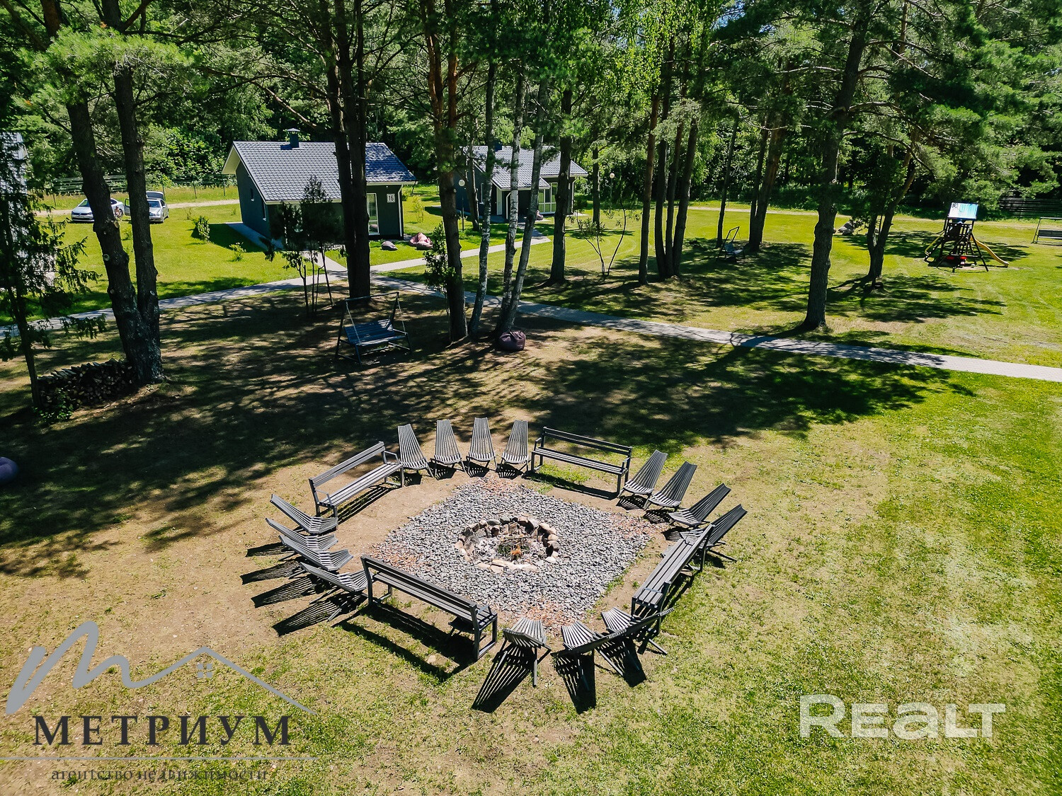 База отдыха круглогодичная и расположена в живописном сосновом лесу на берегу лесного озера. Она построена в 2022 году поэтому имеет современное и качественное оснащение.