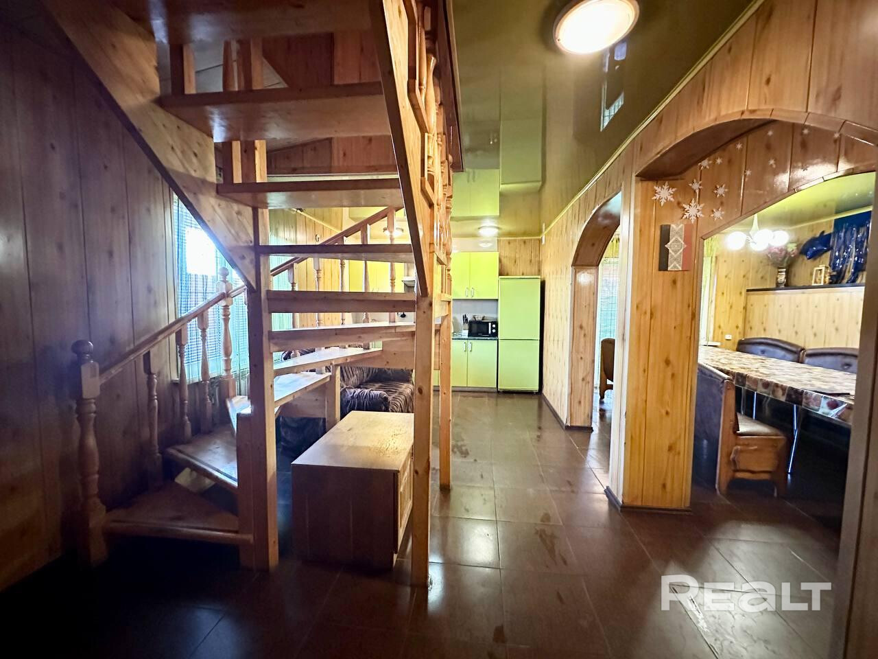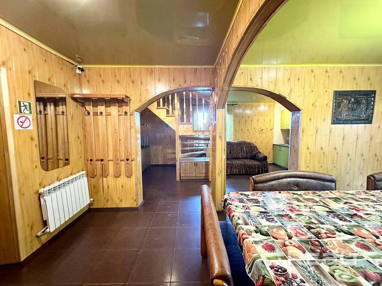 Продается двухуровневый коттедж для проведения торжеств и отдыха в городе Слуцке. На первом этаже расположены банкетный зал с лоджией на 15-20 посадочных мест, кухня, бильярд, баня-сауна на дровах, комната для холодных обливаний, с/у и душ. На втором этаже - 2 спальные комнаты. Всего в коттедже 12 спальных мест. Есть необходимые коммуникации: электричество, отопление, канализация, водоснабжение На участке расположена беседка на 25человек, большой мангал, детская площадка. Территория ограждена.