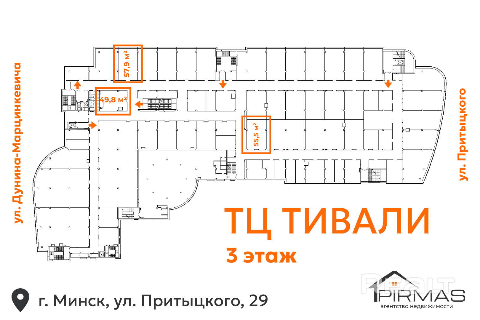Приглашаем Вас познакомиться с предложением, которое сочетает надёжность, устойчивый спрос и одно из лучших мест в Минске для долгосрочных инвестиций в коммерческую недвижимость. На третьем этаже ТРК «Тивали» (г. Минск, ул. Притыцкого, 29) в продажу поступил единый лот из трёх торговых помещений площадью 49,8 м2, 57,9 м2 и 55,5 м2. Все площади сданы надёжным арендаторам, работают много лет и обеспечивают стабильный денежный поток с первого дня владения.