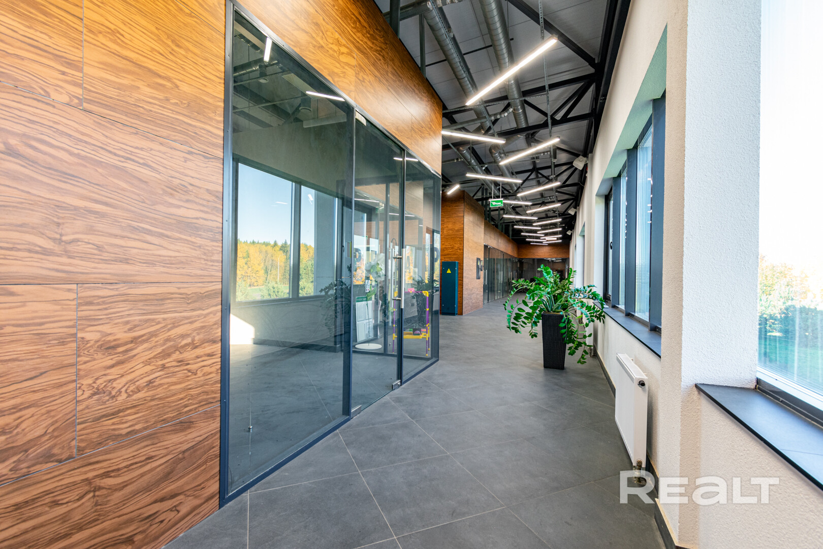 Здание 2021 года постройки, общая площадь 835.1 м.кв., фундамент ж/б, конструкция строения каркас металлический, наружные стены панели металлические с утеплением из минеральной ваты, внутренниестены ж/б, перекрытия ж/б плита, крыша панели металлические с утеплением из минеральной ваты, окна алюминиевый профиль, ПВХ профиль, стеклопакеты. Высота потолка первого этажа 3,91м., второго 5,25 м.