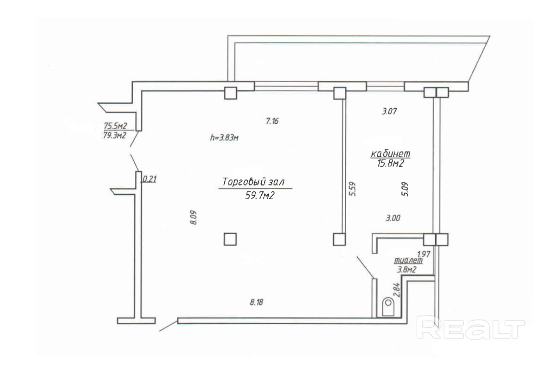 Помещение (79.3 кв.м.) продаётся вместе с небольшим складом (40.2 кв.м.) и отлично подойдёт не только под свой бизнес (торговая точка, сфера услуг), но и арендный бизнес.