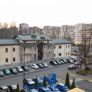 Здание расположено в районе плотной жилой застройки р-н Зеленый Луг, в живописном месте с прекрасными видами на Севастопольский парк. Активный транспортный и клиентский поток, близость жилых кварталов, а также в шаговой доступности находится БЦ «Парк Плаза».