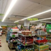 В настоящий момент помещение арендуется торговой сетью ЕВРООПТ и аптекой.