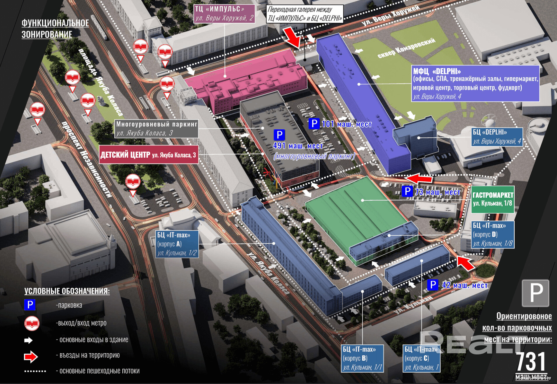- Новая концепция: внутри ИМПУЛЬС полностью преобразится: современный и удобный дизайн интерьера, комфортные павильоны, эскалаторы, навигация, общественные зоны и кафе. Глобальные изменения ожидает целый район, вблизи Комаровского рынка улучшат транспортную инфраструктуру и проведут модернизацию соседних корпусов в современные деловые и торговые центры, что значительно увеличит трафик. Проблема парковки будет решена за счет многоуровневого и наземного паркингов емкостью 590 машиномест.
