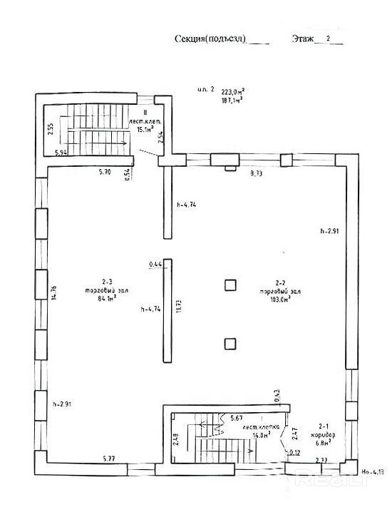 Помещение 2 - 223,0 кв.м, на втором этаже, административно-торговое (222 000).