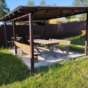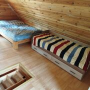 К услугам отдыхающих два дома на выбор: - Одноэтажный дом рассчитан на 3 человек. Просторная спальня, кухня, санузел. Отдельно можно арендовать баню. - Двухэтажный дом с баней рассчитан на 8 человек. Спальня на втором этаже, кухня, санузел, душ, баня. Спальные принадлежности и полотенца в наличии. Сдача от 2-суток и на длительный срок. Есть зона барбекю с мангалом, батут, лодка и катамаран, сапборды. Можно арендовать как два дома вместе, так и по отдельности, цены уточняйте по телефону