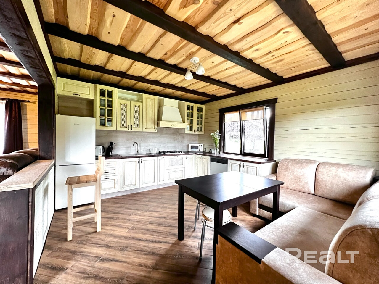 Дом отдыха «Богинский Закуток». Дом включает в себя 13 спальных мест. На первом этаже расположена гостиная, спальня, а также душевая комната со стиральной машиной. Для вашего комфорта в просторной кухне имеется посудомоечная машина. На втором этаже данного дома находятся две отдельные комнаты с 7 спальными местами. На территории расположена большая беседка с зоной барбекю, озеро, шезлонги, батут. Высажено множество декоративных растений, вся территория выложена тратуарной плиткой.