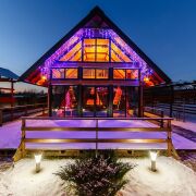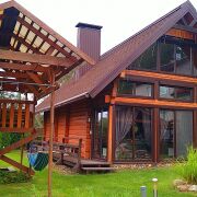 Усадьба расположена в 60 м. от озера Вечелье. Дом-двухэтажное деревянное здание современной архитектуры имеет максимально комфортное исполнение: все помещения первого этажа оборудованы теплыми водяными полами. В гостиной-большой камин, спутниковое телевидение с хорошей акустикой. В доме находятся финская дровяная сауна, большая душевая комната с купелью, теплый туалет, кухня.Помещения оборудованы современной мебелью и всем необходимым для комфортного проживания небольшой компании или семьи.