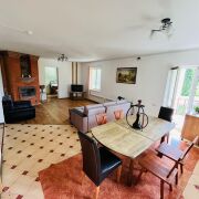 - Полностью оборудованная и просторная кухня-гостиная с горячей водой: холодильник, посудомойка, газовая плита, электрический чайник, микроволновая печь, мультиварка, посуда и приборы, чай, кофе.