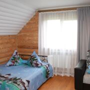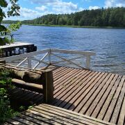 Дом располагается на берегу живописного озера. Берег пологий, песчаный. Обустроенная территория с большой беседкой, мангалом, несколькими пирсами. Имеется детская площадка ( домик, горка, песочница, качели, батут). Также в стоимость входит пользование катамараном. Имеется русская баня. В доме 5спален и 2 просторных холла, а также балкон с красивым видом на озеро. Комфортно размещается компания до 15человек. В комнатах 1 двухспальное место плюс одно дополнительное. Магазин в 150м.