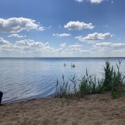 Будем рады встретить Вас в нашей усадьбе. Восточный берег озера Лукомльское. Новый дом, 2025 год, первая линия. Чистый песчаный пляж. Изолированный участок: беседка, рыбалка. Хороший, спокойный, семейный отдых до 8 человек.