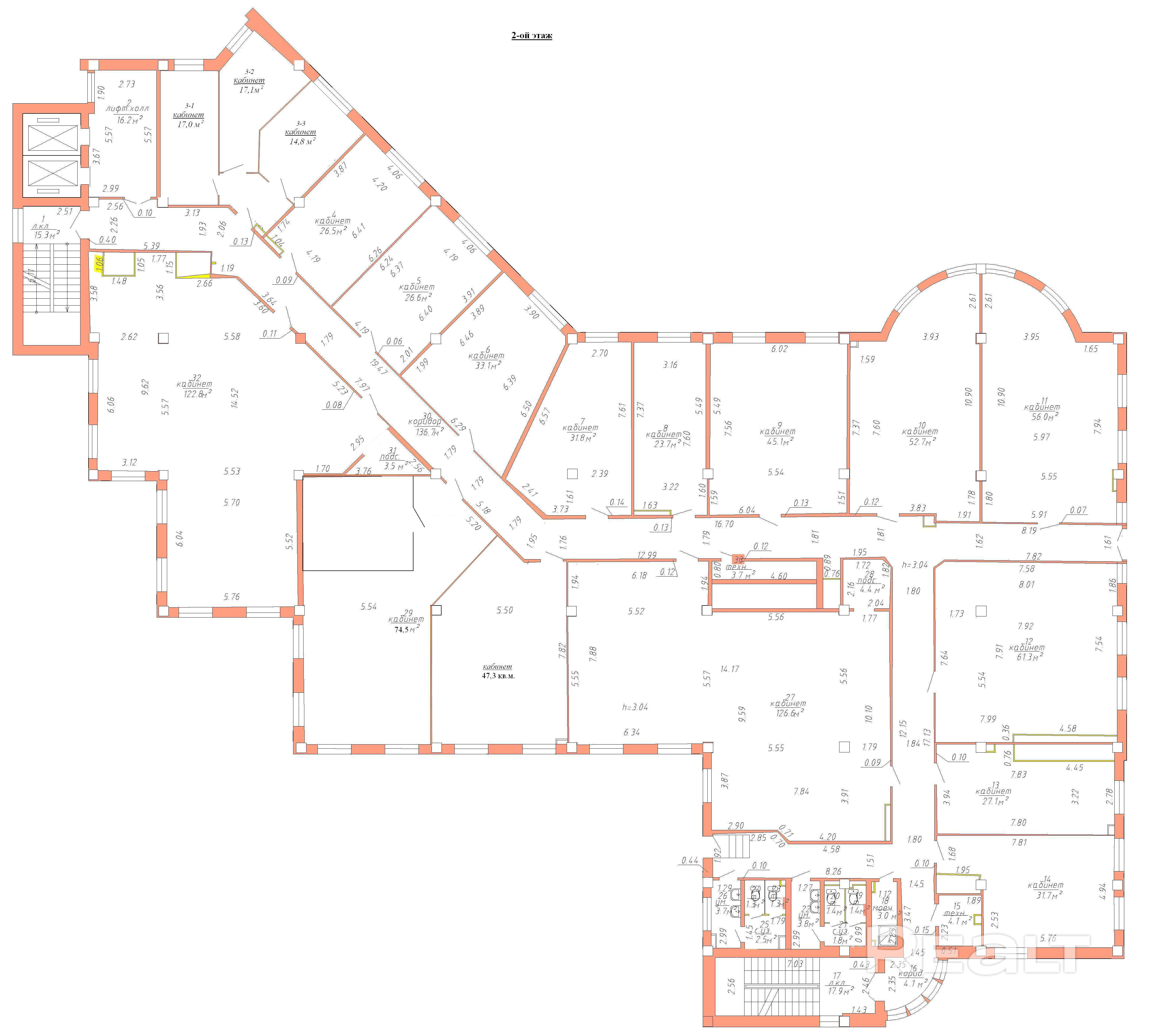 В наличии офисы свободной конфигурации площадью: 17-125 м2.