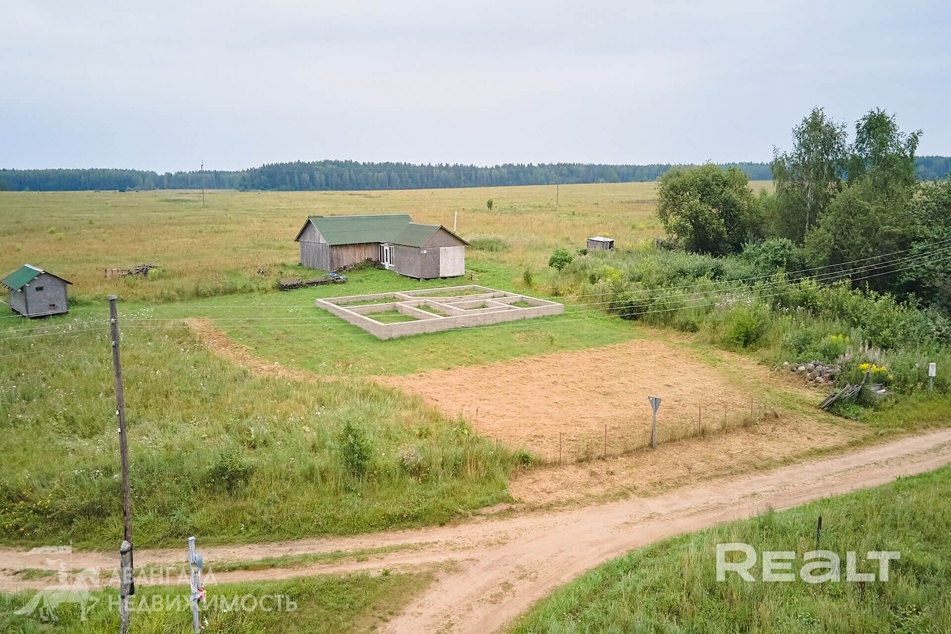Участок в живописном месте 24.99 сотки в частной собственности. На участке залит ленточный фундамент для строительства нового дома. Также есть готовый проект будущего дома. На участке расположен небольшой деревянный дом, в нем проведено электричество, центральная канализация, водопровод, душевая кабина и бойлер, печное отопление, газовый баллон и плитка для приготовления еды. Вы сможете использовать его, как временное жилье при строительстве нового дома. Также на участке есть еще несколько хозяйственных построек, посажены плодовые деревья и ореховые кусты. Своя скважина. Участок находится не в низине, рядом лес и река Лонва.