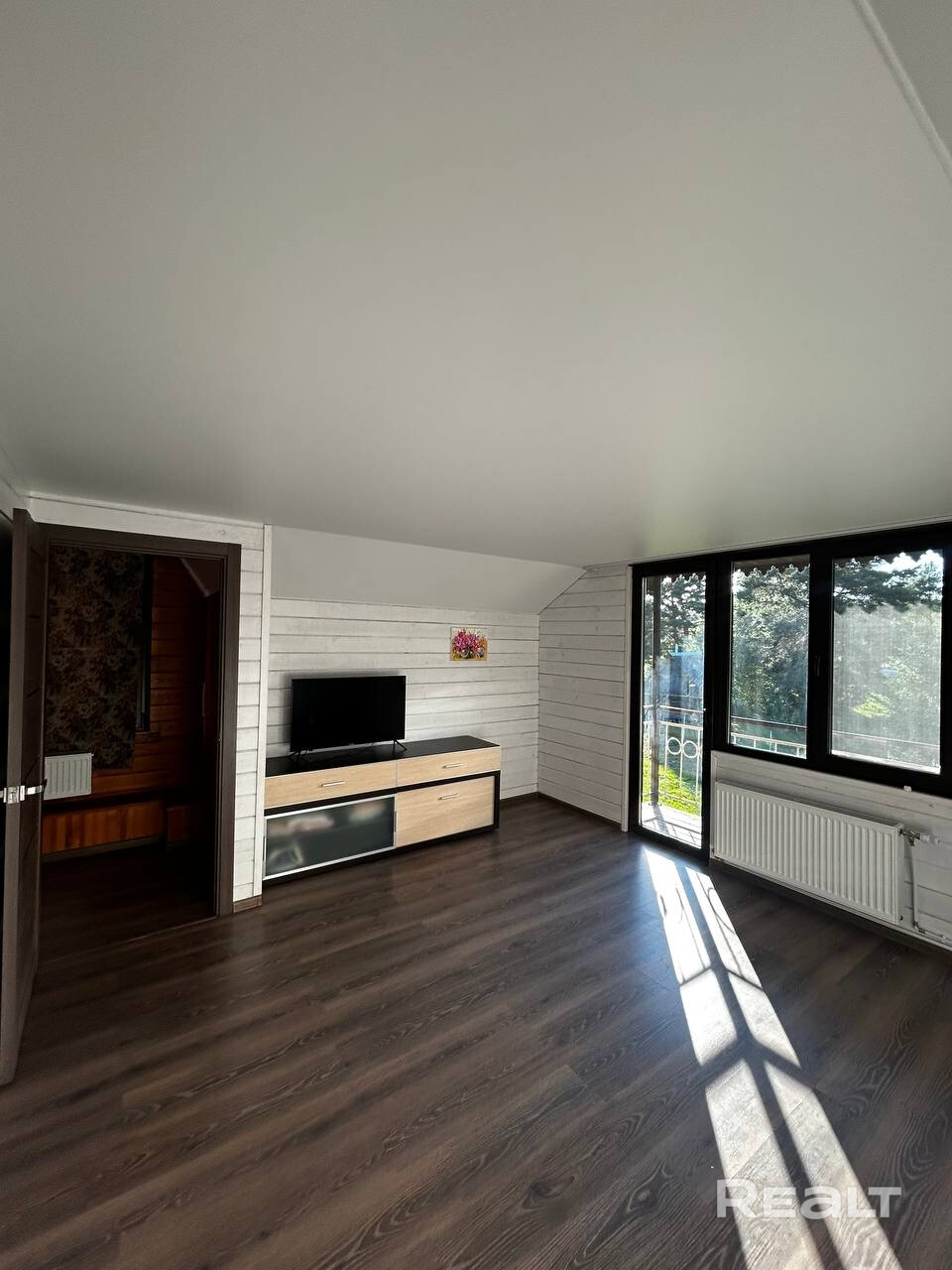Первый этаж: прихожая, с/у, большая гостинная 25м, окна которой выходят на озеро и лес, в комнате есть русская печь с лежанкой лежа на которой особенно прекрасен вид из окна зимой