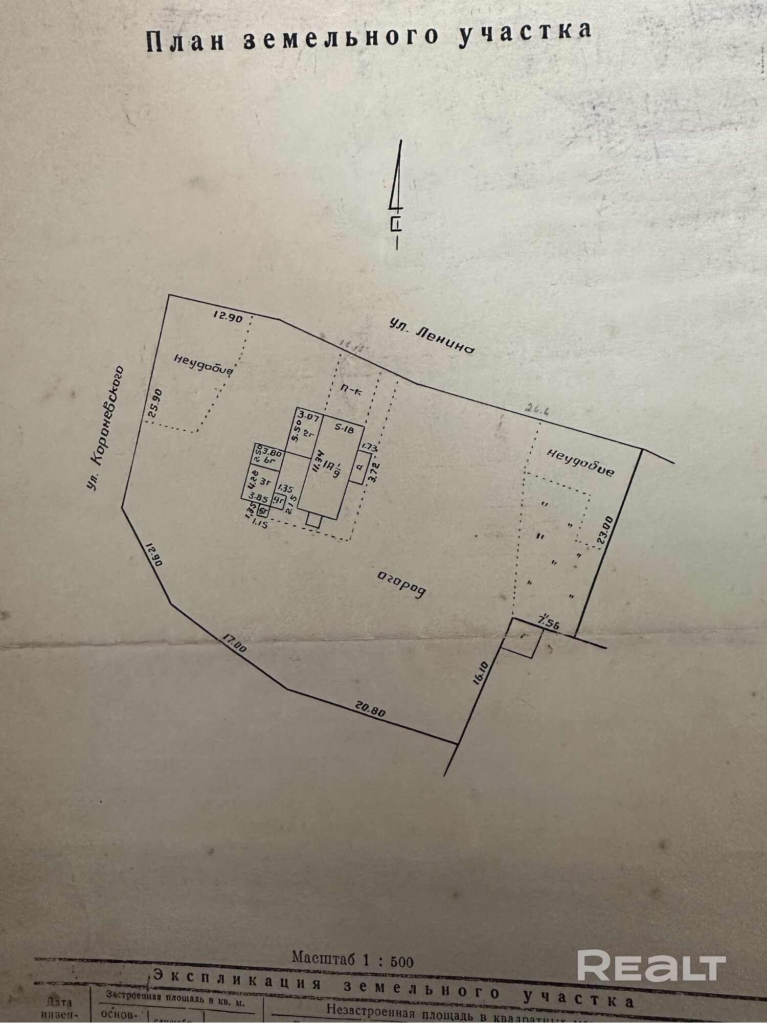 - Площадь участка