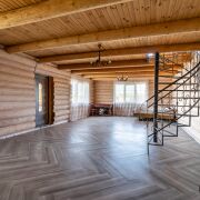 Один из домов – деревянный сруб, который можно использовать как банкетный зал, а на втором этаже есть возможность оборудовать комнату отдыха.