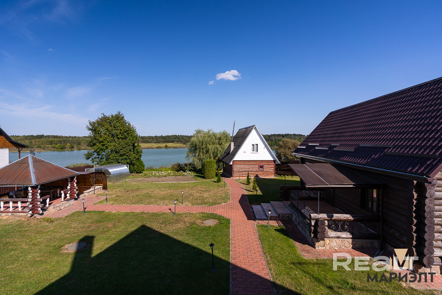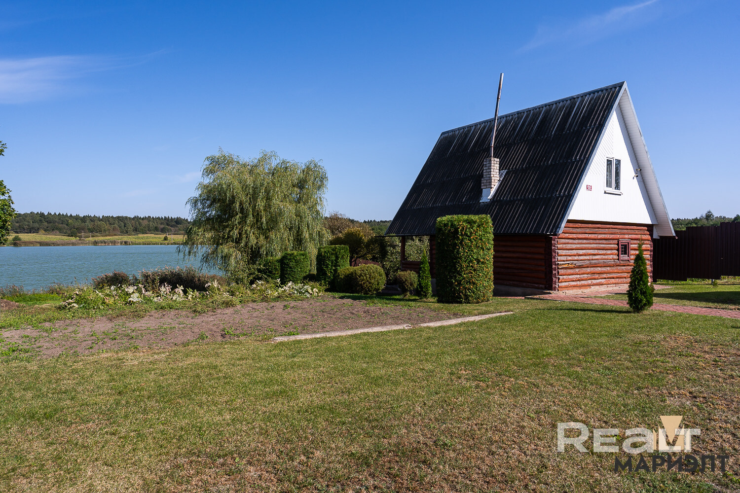 Территория в 17 соток, на которой расположены два дома, баня, теплица, плодовые и декоративные деревья. Спуск в озеро прямо с территории участка!