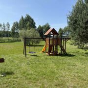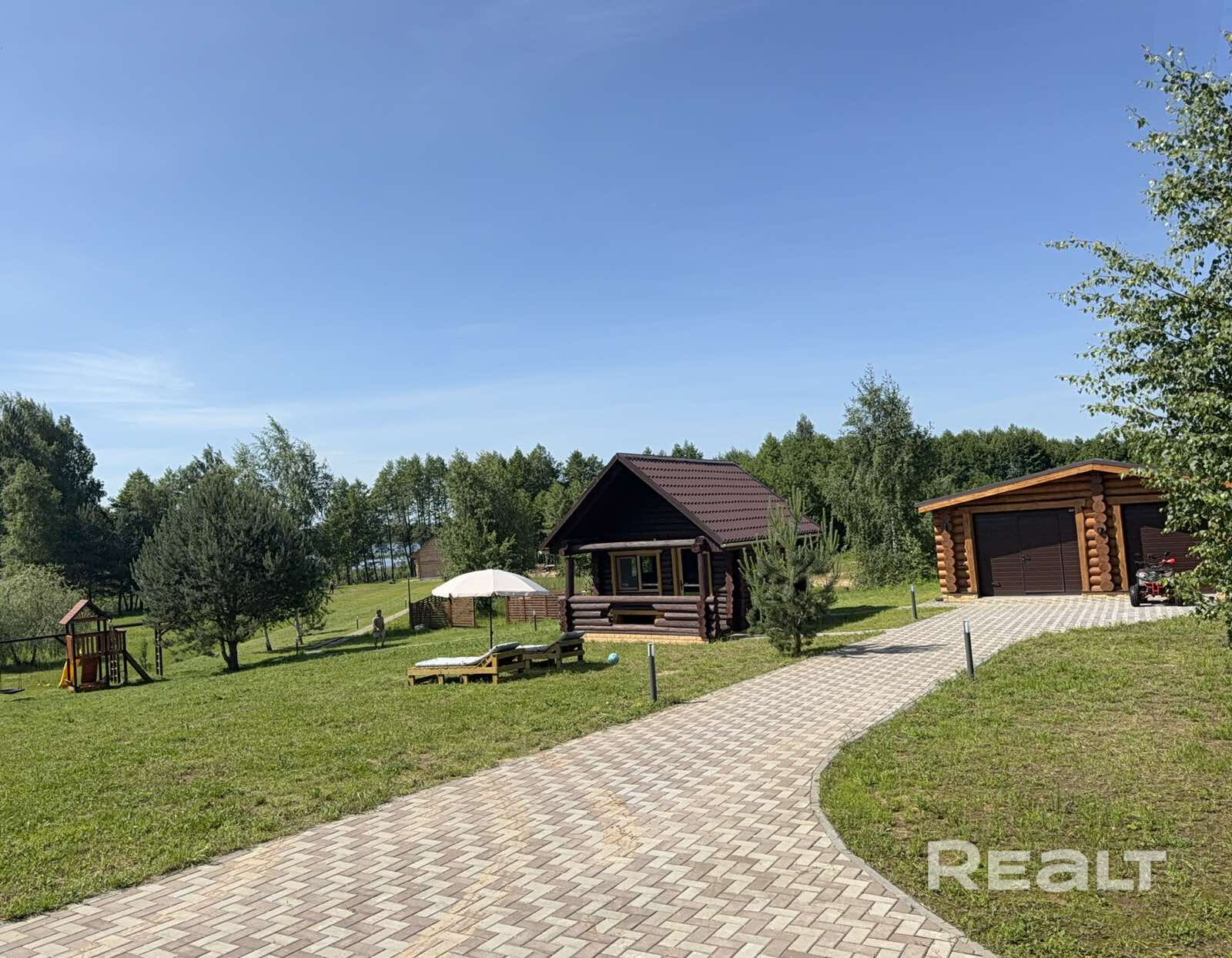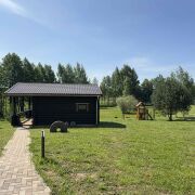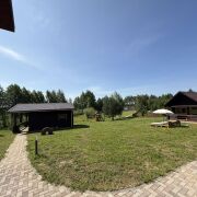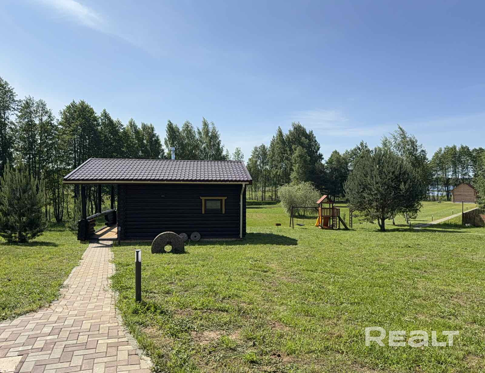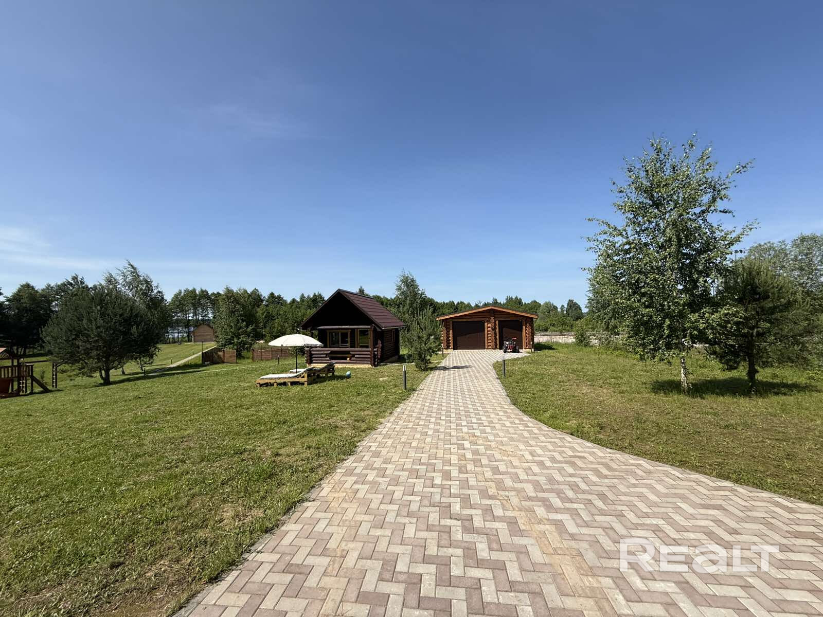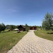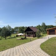 На территории имеются 3 готовых домика для проживания, гараж, детская площадка, зона барбекю, зона отдыха, личный пруд, сруб для бани с дизайнерским проектом, выложены тротуарные дорожки, уличное освещение, система видеонаблюдения, пирс и дорожка к пирсу из ольхи.