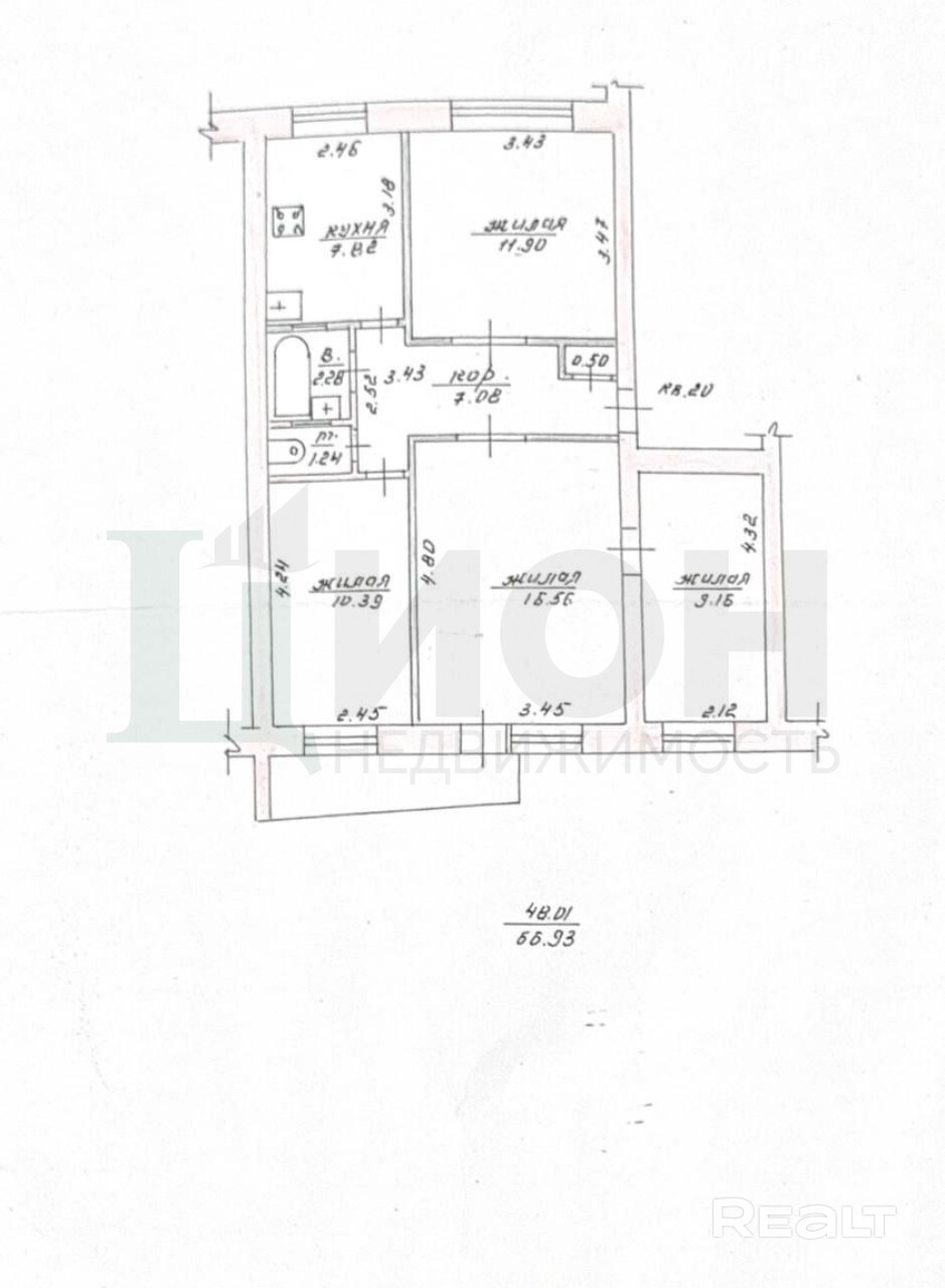 Просторная четырёхкомнатная квартира площадью 69 квадратных метров расположена в самом центре города, рядом с Ботаническим садом, Смоленским рынком и Советской улицей.